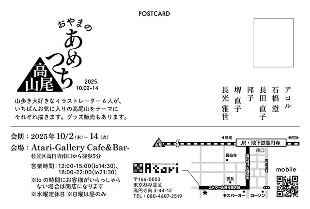 10月2日から高円寺のカフェ「Atari gallery&cafe」にてMJメンバー6人によるグループ展を行います。