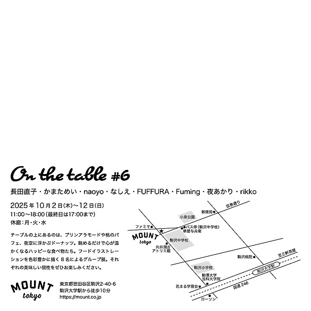 MOUNT Tokyoにて開催されるグループ展「on the table #6」に参加します。