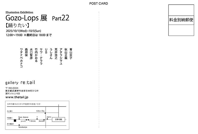 場所:gallery re:tail 東京都武蔵野市吉祥寺本町3-12-9 潤マンション103(吉祥寺駅から徒歩13分ほど)