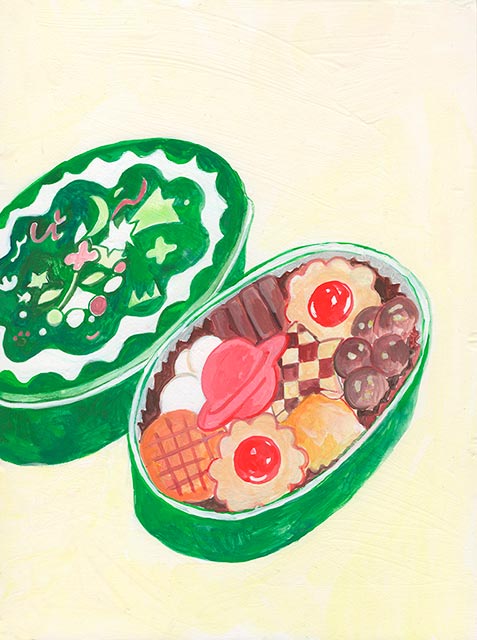 なんとかさんのお面のイラスト、本当にインパクト大!そしてなんとかさんの作品の中でとても新鮮な感覚がありました。このような作品ももっと見てみたいです。