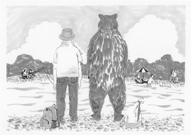 くまと私が川原に到着したシーンを描きました。ピックアップされなかった絵も含め、